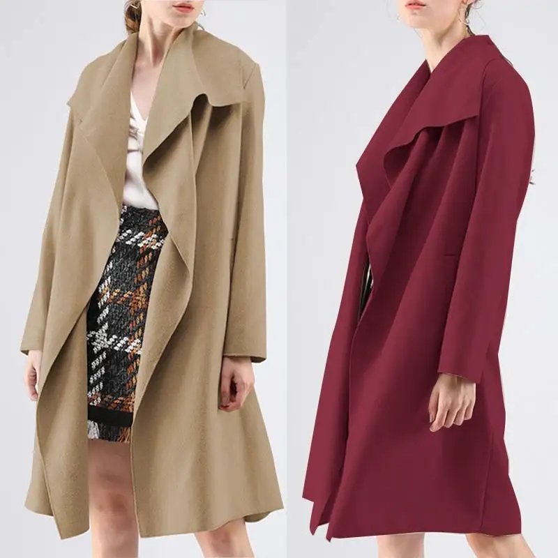 Finest ZANZEA 2019 New Fashion Wide Lapel Women Autumn Coats With Belt Loose Womens Casual Coat Cardigan F